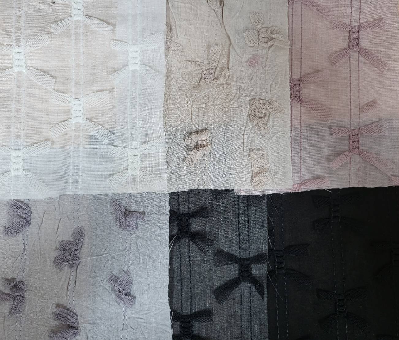 晒のようなコットン生地にシフォンのリボンが付いています。